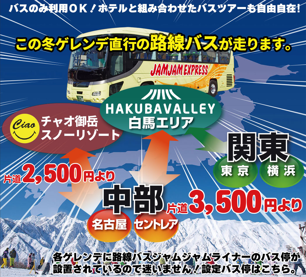 スキー・スノーボードを車内又はトランクに持ち込む場合の積込み料はかかりません。バスへの積み下ろしの際に破損の原因となる可能性が高い為、必ずカバーを付けてお持ちください。破損に対する責任を負いかねますのでご了承ください。