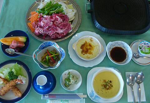 夕食:「日替わり肉料理(焼肉・すき焼き等)」