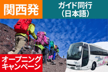 Aコース 富士登山 オープニングキャンペーン 関西【三宮・梅田・京都】発 <富士登山専任ガイド同行> 吉田ルート 午前発 2日間[7・8合目 選べる山小屋]