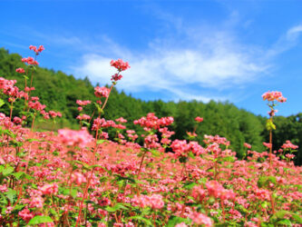 【6-7】中部発 2つの詰め放題とぶどう狩り食べ放題&1房土産!一面ルビー色の花畑 赤そばの里見学!